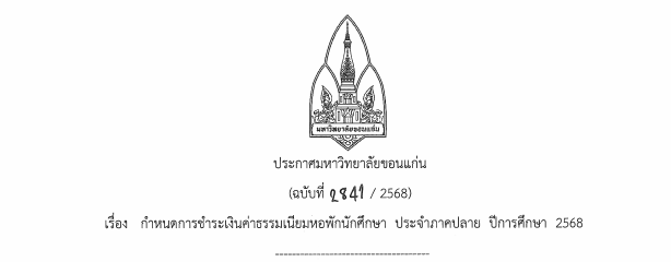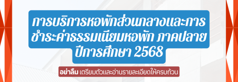 กำหนดการชำระค่าธรรมเนียมหอพักนักศึกษา ประจำภาคปลาย ปีการศึกษา 2568